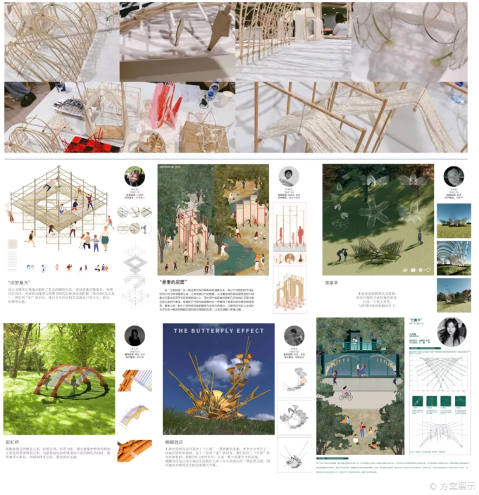 本次活动为东华大学环境设计系开设的崇明乡村振兴艺术装置产学研课程,原构国际设计顾问为课程的共建方,为活动提供了专家指导、实训场地等各方面的支持。由环境设计系黄更副教授带领46名本、硕、博学生参与了课程实施,从第一次的田野调查到项目现场搭建落地,前后共经历了7个月。期间学生们共完成了46件详细设计方案,通过指导小组最终评审,通过适宜尺度、在地材料、可预制性、乡野趣味性等条件,最终确定了5件现场搭建作品。